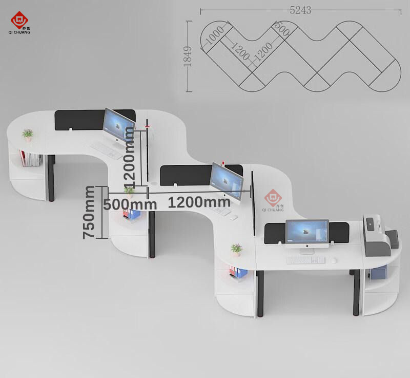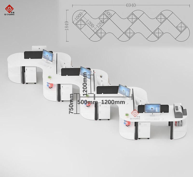 臺(tái)面:臺(tái)面厚度25MM 臺(tái)面、屏風(fēng)邊角全部采用圓弧倒角,避免尖銳棱角對(duì)人身的傷害,盡顯系列產(chǎn)品的人性化設(shè)計(jì)。側(cè)柜、活動(dòng)柜板件采用吸塑成型技術(shù)。